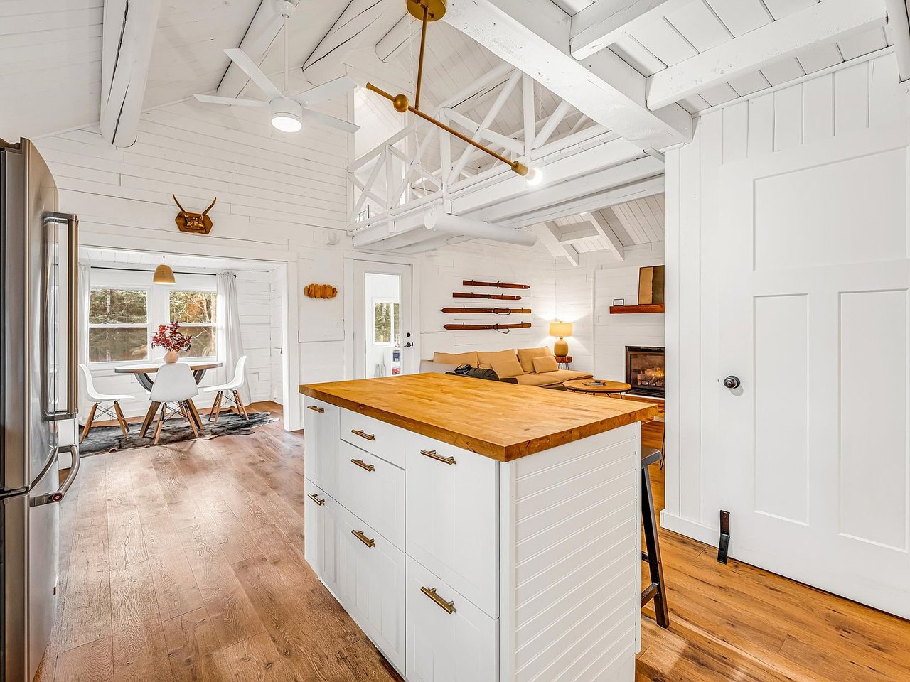 If it's lakes and mountains that you want, it's lakes and mountains that you'll get; welcome to 59 Pawtuckaway Drive, Haverhill, New Hampshire! Nestled between Lincoln and the the Vermont state line, this little slice of heaven is part of the ever-popular Mountain Lakes District where life moves a tad slower and outdoor recreation has no bounds. Completely renovated in 2024, you'll enjoy that classic New England log cabin feeling but with a fresh, contemporary approach. The home's designer left no stone unturned opening the floor plan, simplifying the living space and brightening the entire interior...that instant breath of fresh air as you slip through the front door. Flooring, kitchen cabinetry, counters and appliances, plumbing, sinks, vanities, a gas stove, roof, windows, doors...all brand new! Fully furnished too! And recreation? Mountain Lakes was literally built around it with four local beaches, a basketball court, in-ground pool, tennis courts, clubhouse and a playground. During the winter Loon Mountain, Cannon and Waterville Valley are all easily accessible from I-93 and New Hampshire's local and state snowmobile trails are close by as well. Other area attractions include Clark's Trading Post, Lost River Gorge, Whale's Tale Waterpark and the Ice Castles! Bottom line, if you're ready for that quintessential mountain cabin get-away you've always dreamt of your opportunity is here and now! Delayed Showing: Showings begin at the Open House, Saturday, August 3, 10am-2pm.